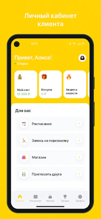 Mobile application for clients of fitness clubs and sports studios