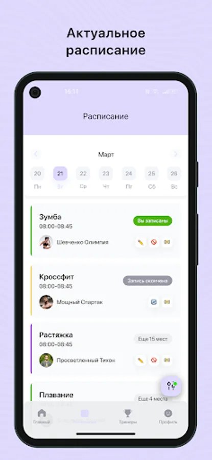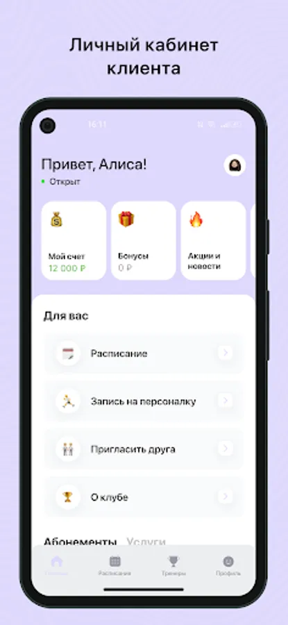 Mobile application for clients of fitness clubs and sports studios