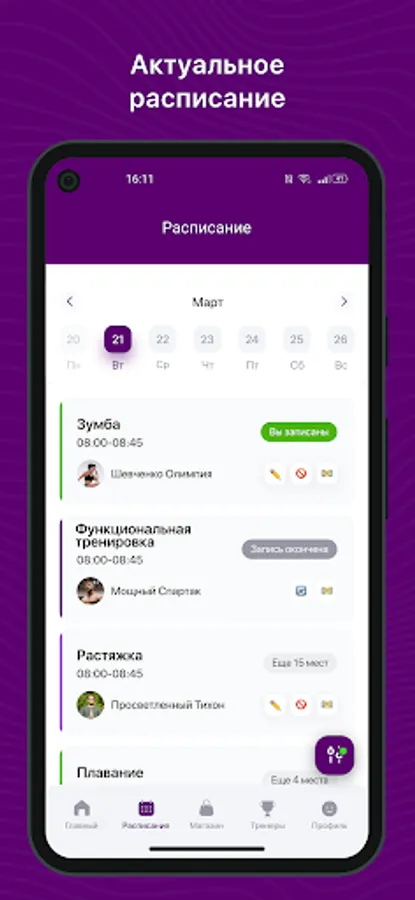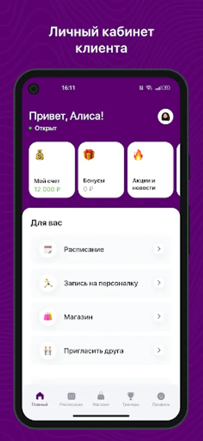 Mobile application for clients of fitness clubs and sports studios