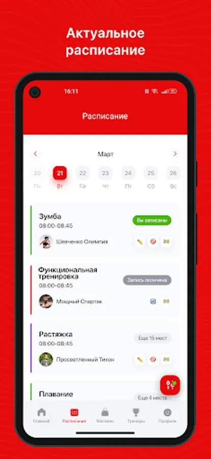 Mobile application for clients of fitness clubs and sports studios