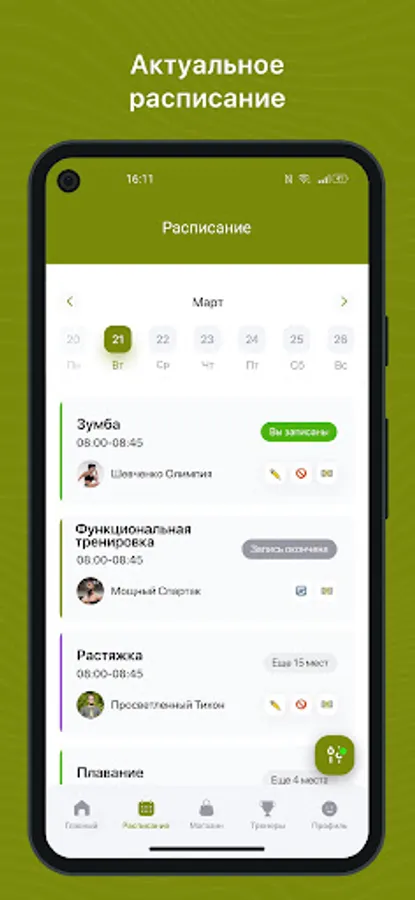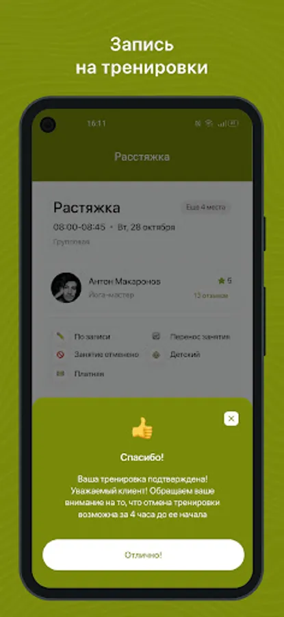 Receive PUSH notifications about an upcoming workout 3 hours in advance;