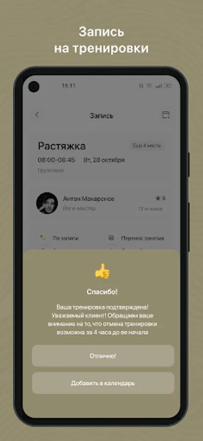 Receive PUSH notifications about an upcoming workout;