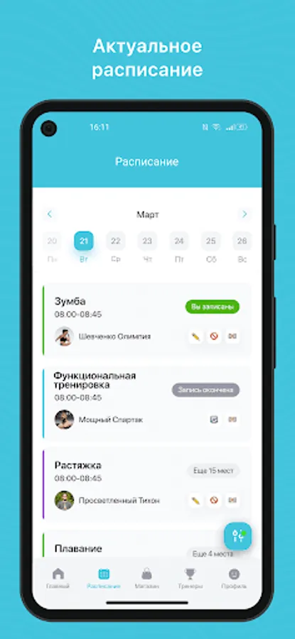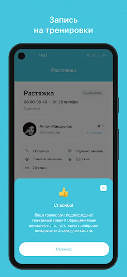 - Receive PUSH notifications about an upcoming workout 3 hours in advance and more;