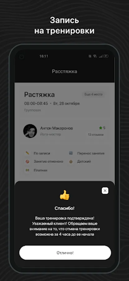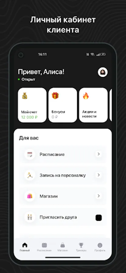 Mobile application for clients of fitness clubs and sports studios