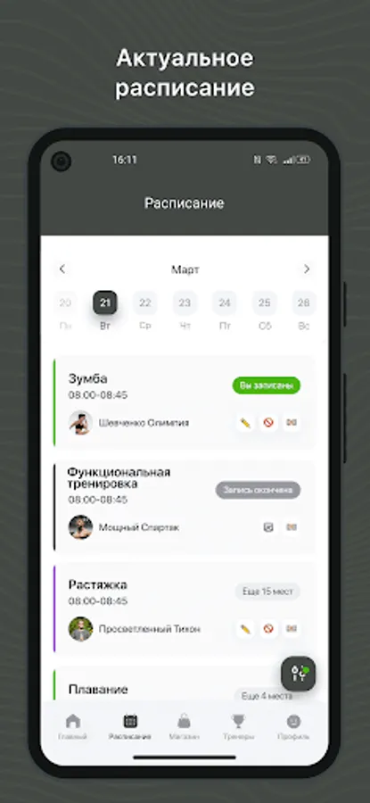 Receive PUSH notifications about an upcoming workout 3 hours in advance;