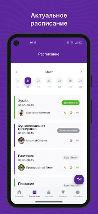 Receive PUSH notifications about an upcoming workout 3 hours in advance;