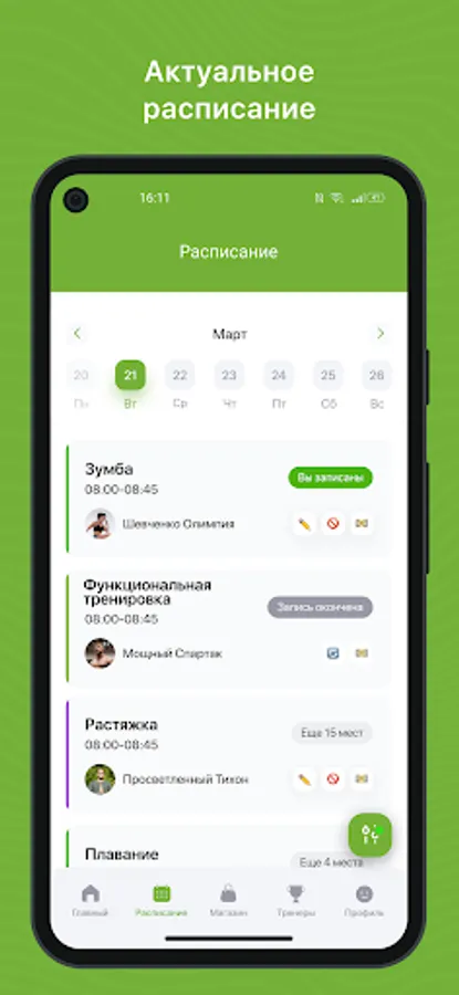 - Receive PUSH notifications about an upcoming workout 3 hours in advance;