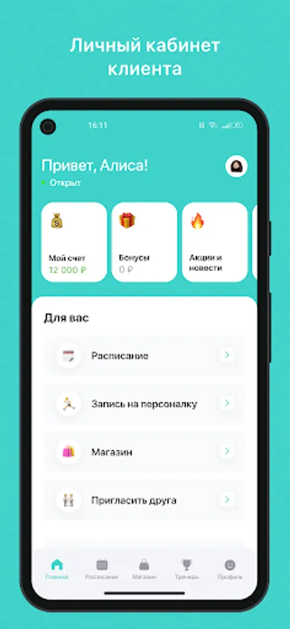 Mobile application for clients of fitness clubs and sports studios