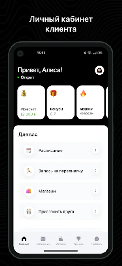 Mobile application for clients of fitness clubs and sports studios