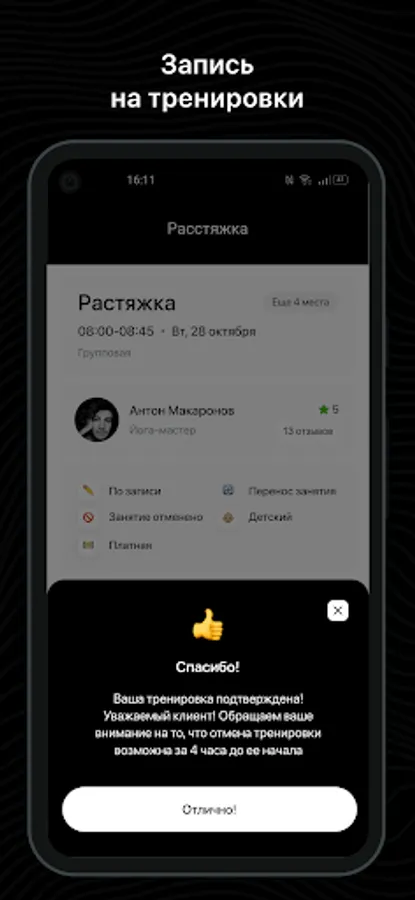 Mobile application for clients of fitness clubs and sports studios