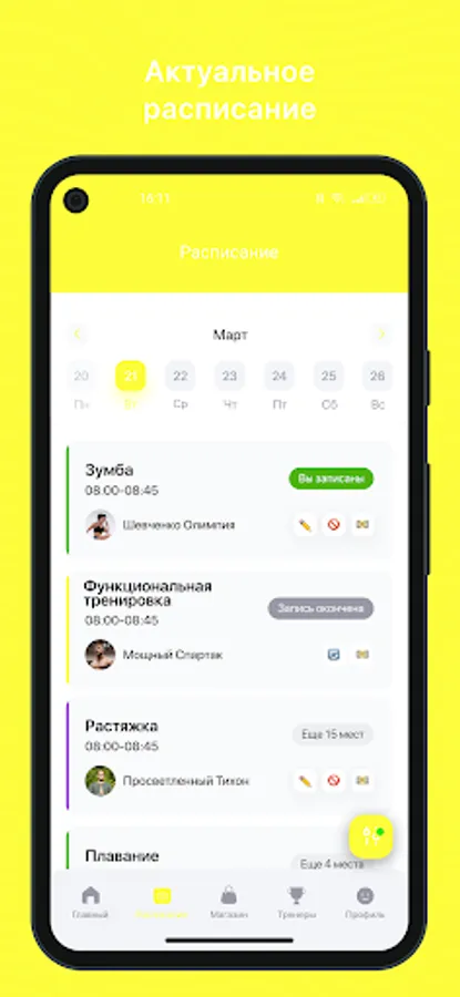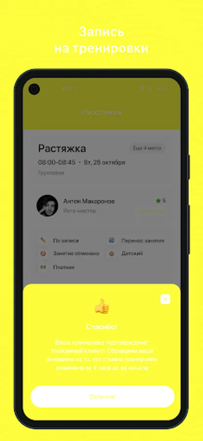 - Receive PUSH notifications about an upcoming workout 3 hours in advance;