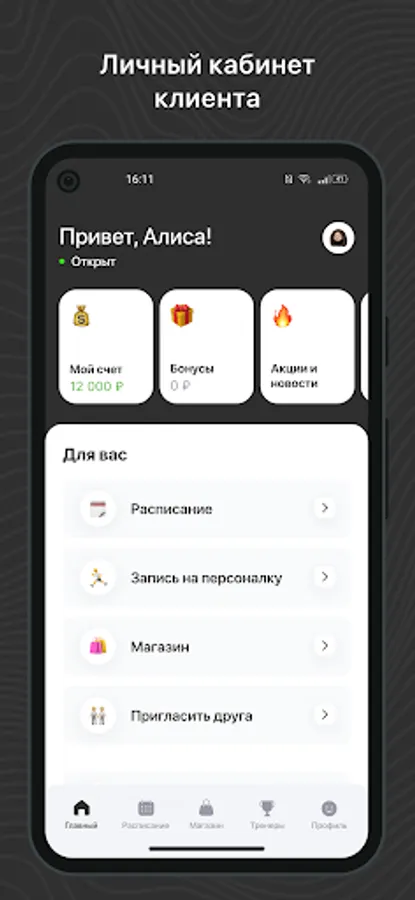 Mobile application for clients of Victoria Kuvaeva's fitness studio.