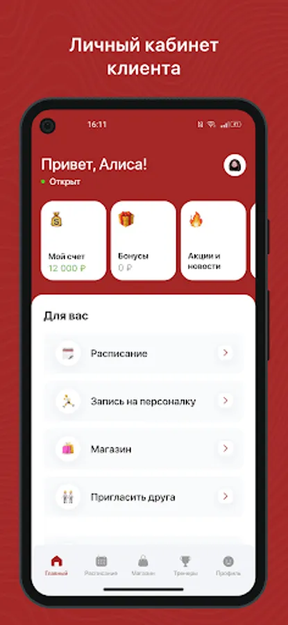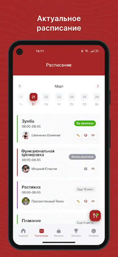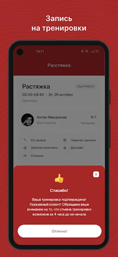Mobile application for yoga center clients