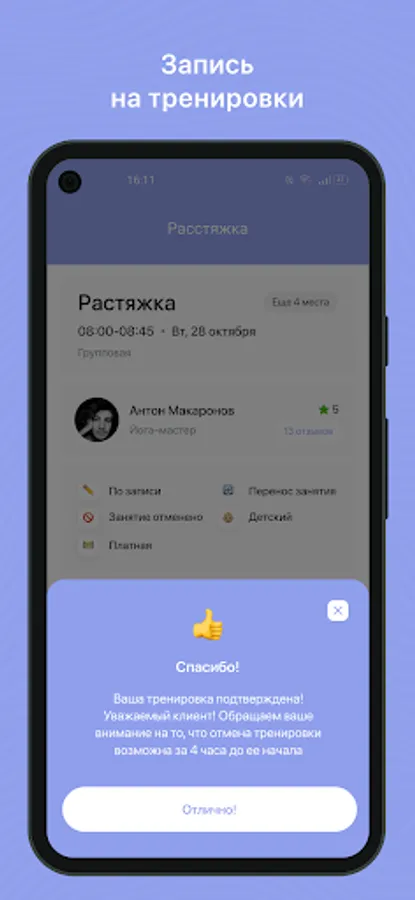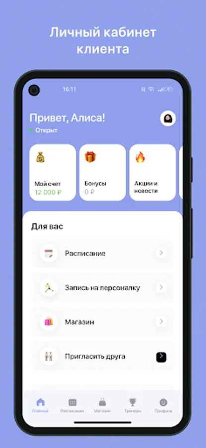 Mobile application for clients of fitness clubs and sports studios