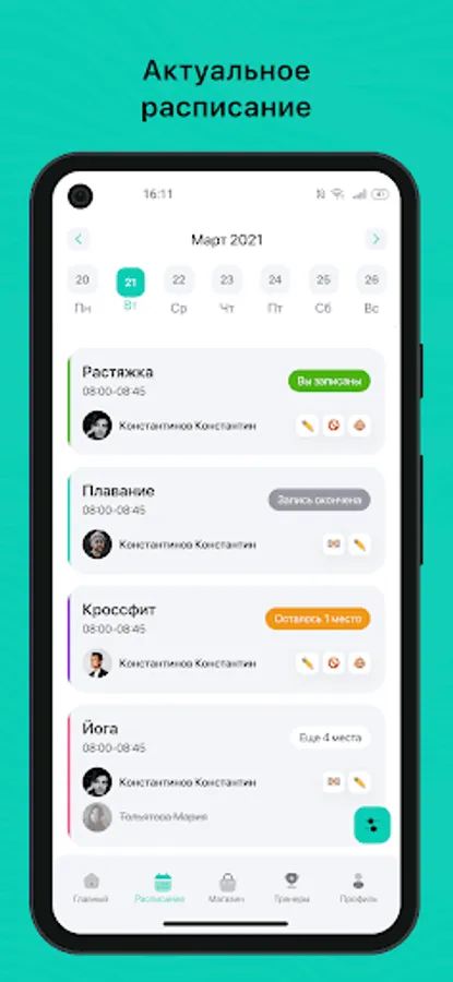 Mobile application for clients of fitness clubs and sports studios