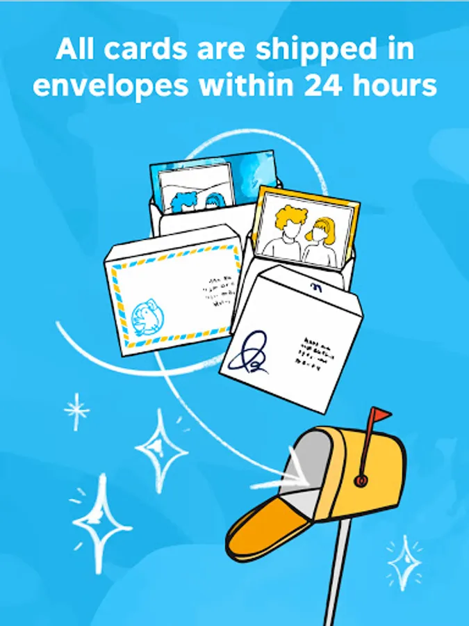 You can send your creations to any country in the world at no additional cost since it is included in the price. Perfect for globetrotters or those who have loved ones around the world. Your postcard, gazette or personalized greeting card are prepaid and automatically sent in envelopes.