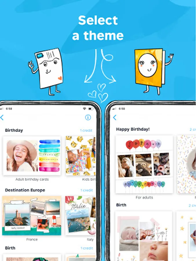 Like almost 1.3 million of our users around the world, pamper those around you with the creations that you can personalize for any occasion: a custom holiday postcard, a birthday card, a birth or wedding greeting card, photobooks to keep your memories safe.