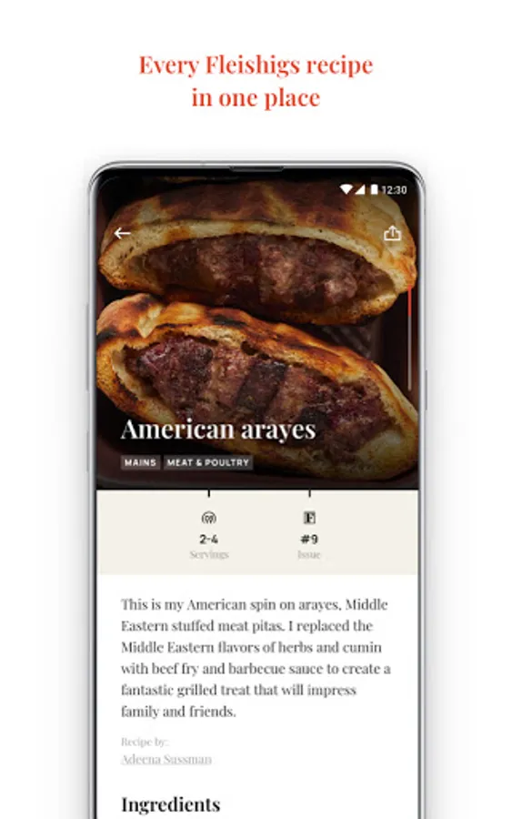Introducing the Fleishigs app, a beautiful place where you can conveniently find every recipe from every issue organized by item, author, theme, and meal type, with easy to follow step by step instructions and visuals.