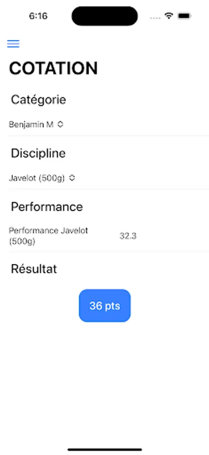- Donne le nombre de points / table de cotation à partir de la discipline + catégorie