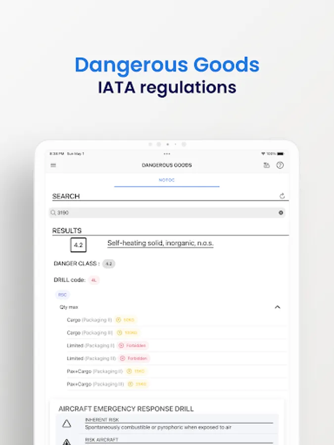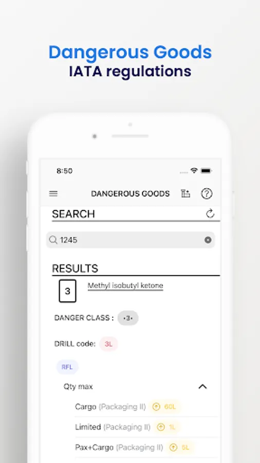 • A Dangerous Goods decoder with maximum quantities allowed by IATA