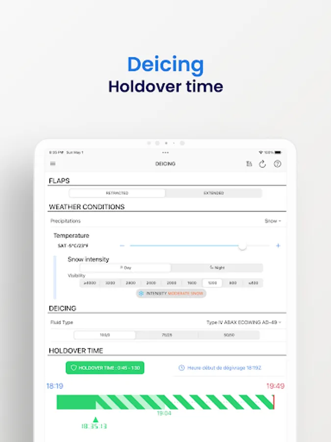• A wind limitations module (cross wind, maximum allowed wind force...)