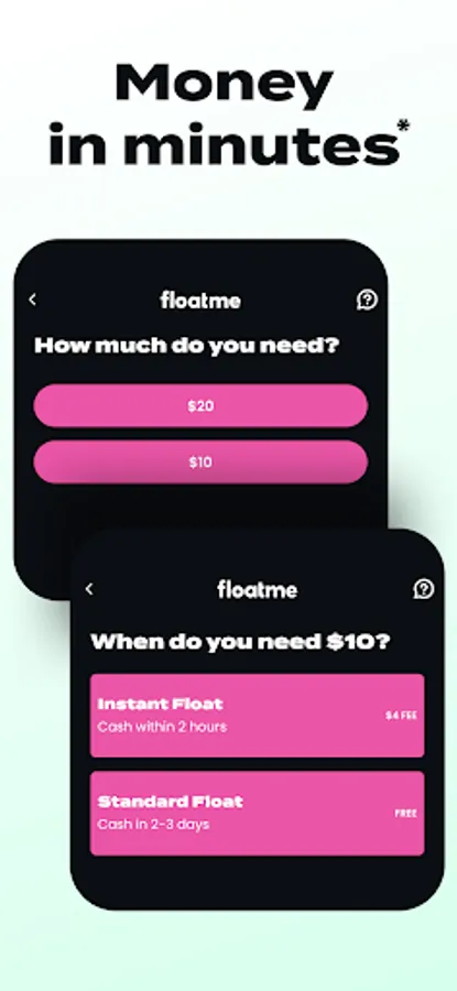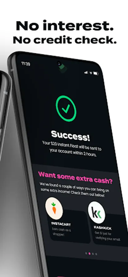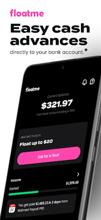 Pay bills, get gas, or buy groceries. All you have to do is download the app today and connect your bank account to get started. Once you’re a member, request Floats at no cost and receive funds in your bank account in 3 days or less. Need funds immediately? We’ll expedite your Instant Float within minutes for a small fee. Instant Float fees vary - $10 Instant Floats have a $3.00 fee, $20 Instant Floats have a $4.00 fee, and $30+ Instant Floats have a $5 fee.*