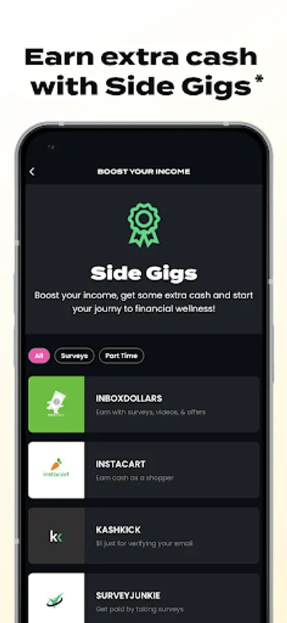 Need to earn a little extra cash? Explore our list of side gig opportunities through third-party partners in the app to earn cash if you need it.