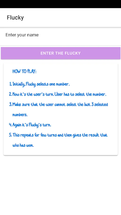 Flucky is a random number game in which the probability of winning or loosing the game is purely luck.