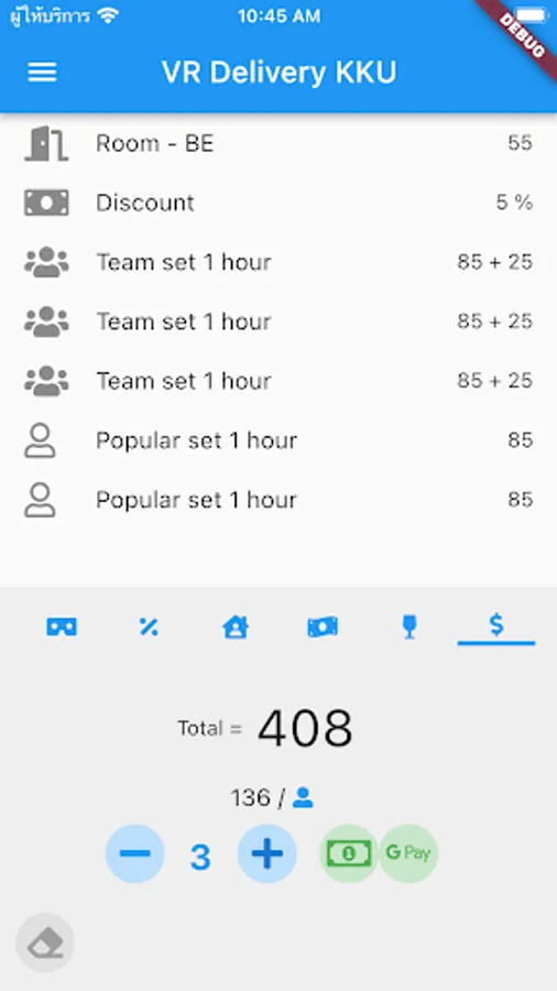 This app is developed for VR Delivery KKU's staff. You can use this app to calculate the VR playing price.