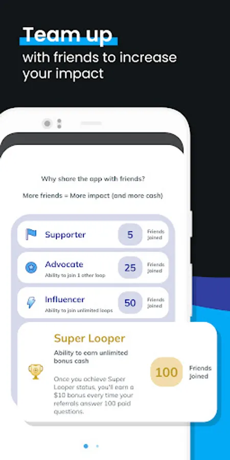 Getting just 100 people to join your Community Loop qualifies you to start earning even more for your cause. We'll give you an extra $10 every time 100 questions are answered from your Community Loop.