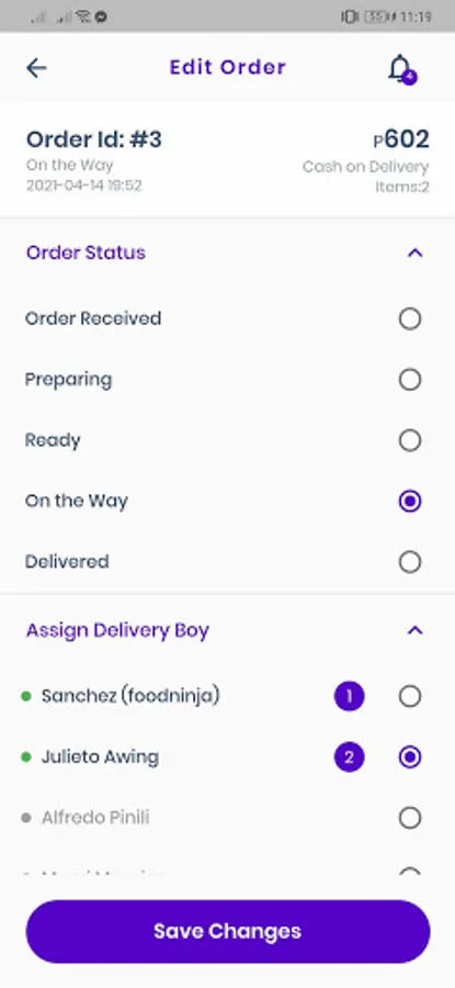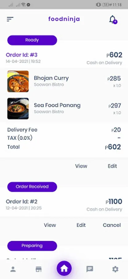 Receive orders, assign a driver, view your income, edit your menu, all in one app.