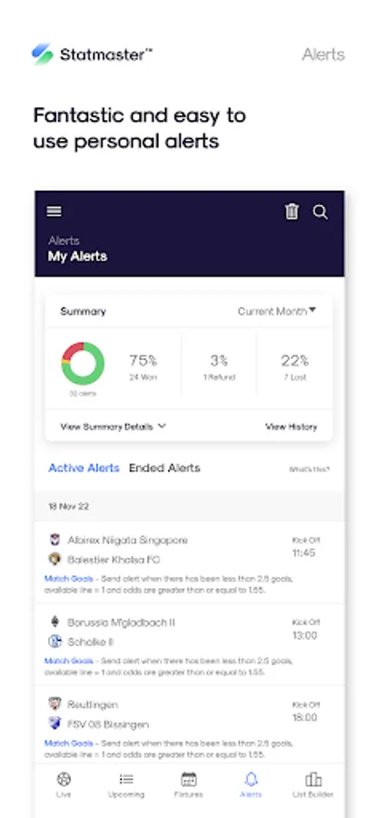 Keep up to date with LIVE notifications, whether you want goal, corners, cards, HT & FT result….. we have you covered.