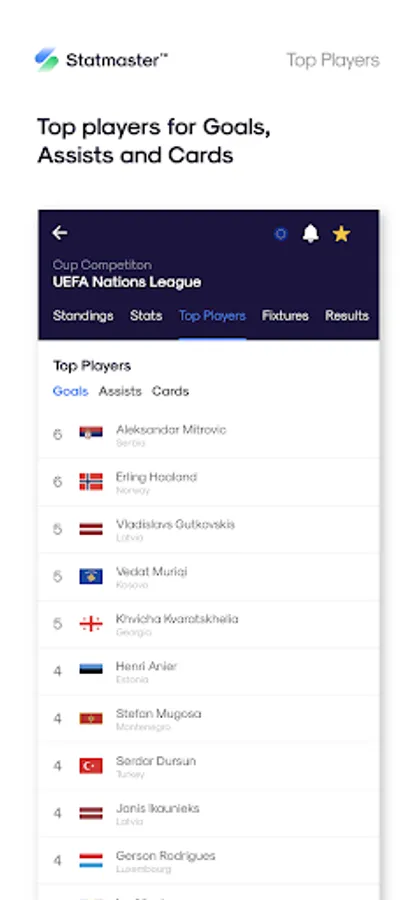 Teams Top Goal Scorer, Top Assists and Most Bookings.