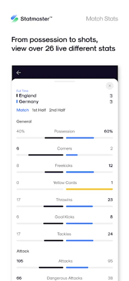 Our LIVE data will keep you up to date with the latest time line from any game, including goals, cards, corners, shots, possession and attacks.