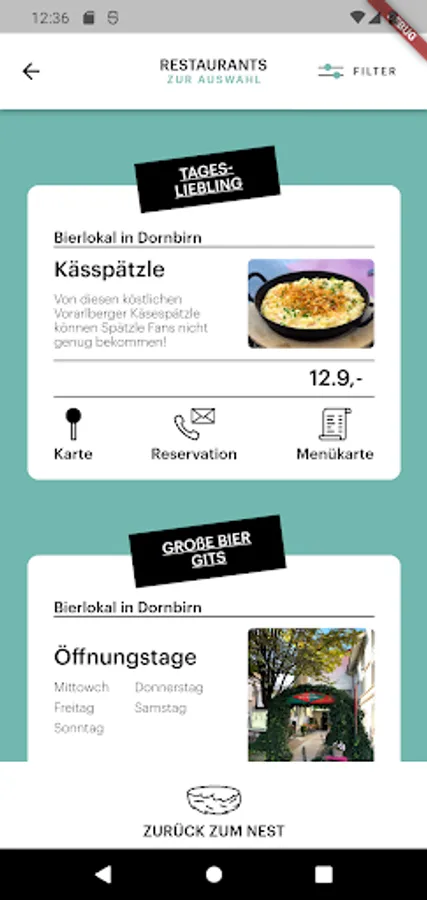 Our app shows you where to find the food you're craving. Seasonal, regional, international, home-style, vegan or down-to-earth - whatever your palate desires. Check out the menus simply and easily, select the restaurant and reserve your table right away.