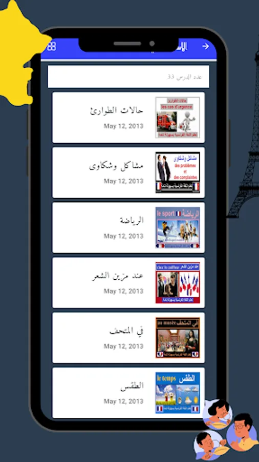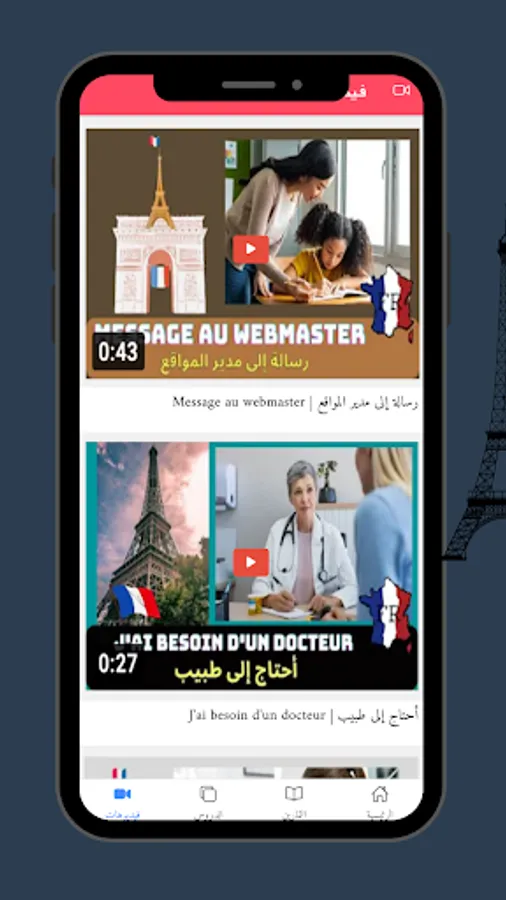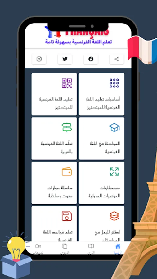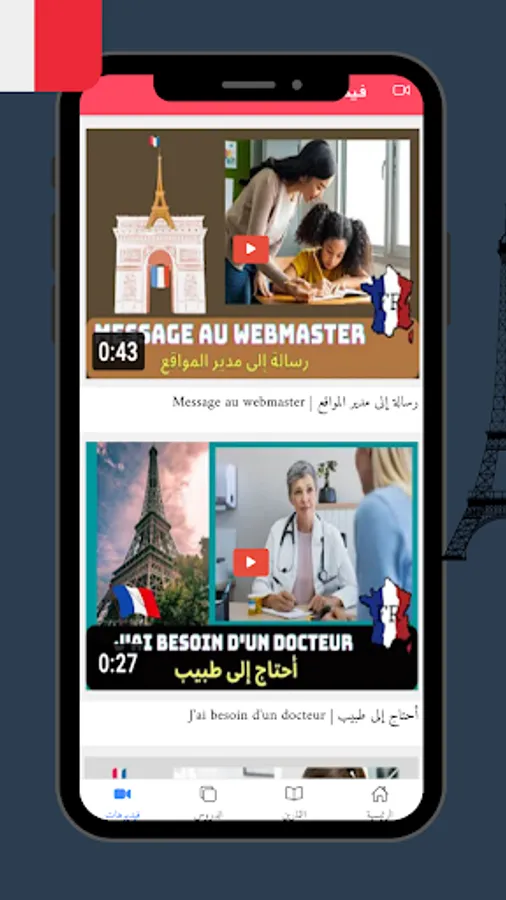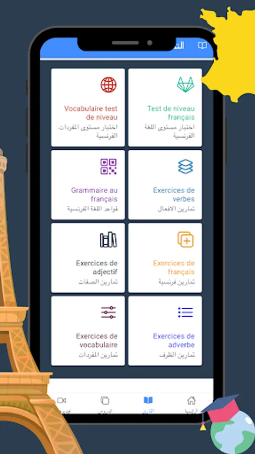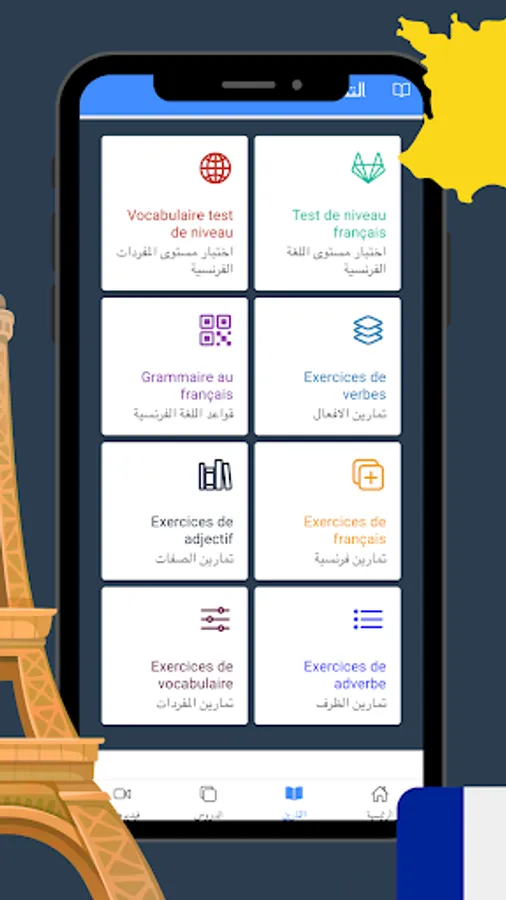 The application of learning the French language from scratch until professionalism for free. Android application to help beginners to learn French easily with an Arabic explanation and simplified with exercises and videos The application of teaching the French language is very light and works on all phones without the need for the Internet