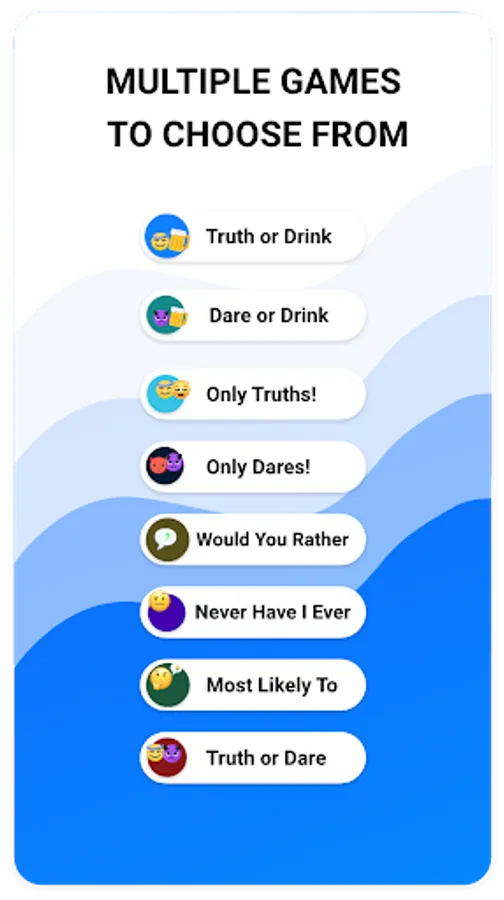 Your friends will thank you for this! Enjoy the best drinking games with up to 7 friends. Great for sleep overs and game nights. Play classic games like Never Have I Ever, Most likely to, or Truth or Dare. Enjoy new games that you have never seen before like Dare or Drink, or Only Dares! This games are completely Free to enjoy with whoever you want.