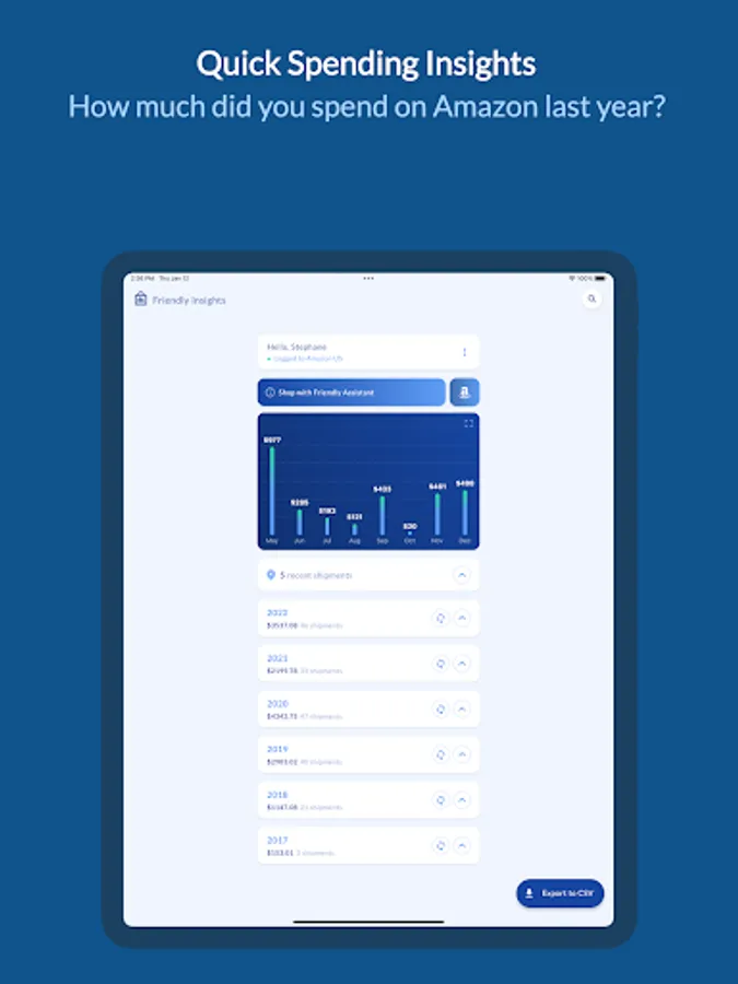 Welcome to Friendly Shopping Insights! Our app is designed to help you track your spending and shop on Amazon without being bombarded by ads.