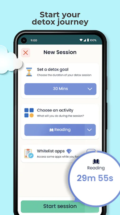 ✅ Choose the duration of your Dtox or pomodoro session or enter a custom duration of your choice.