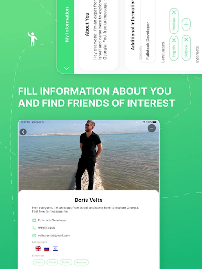 Welcome to Gamarjos, your indispensable assistant for adaptation in Georgia. Designed with simplicity and convenience in mind, this app offers features that make it easy to meet new people, forge friendships and explore your new country.
