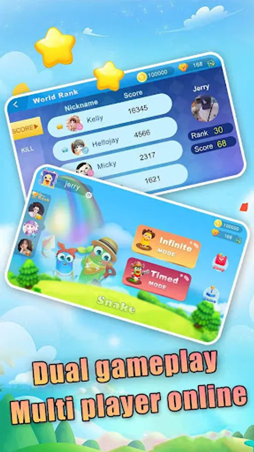 If your head touches another snake, you will fail and the game will end. However, if others encounter you, they will fail, and you can eat their wreckage and become stronger!