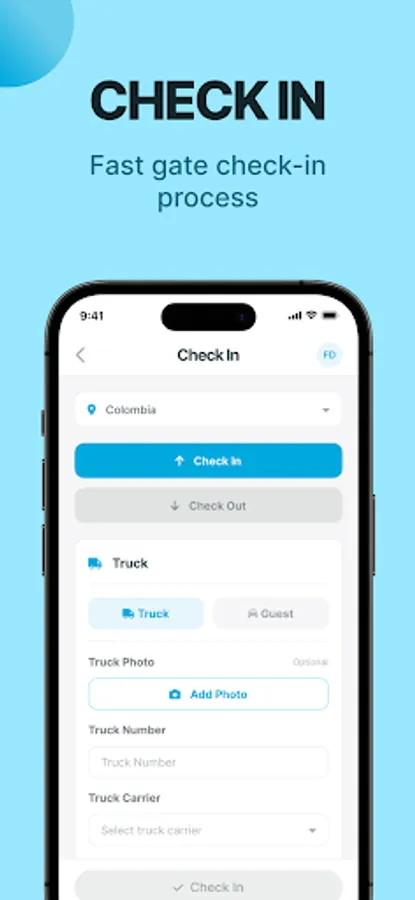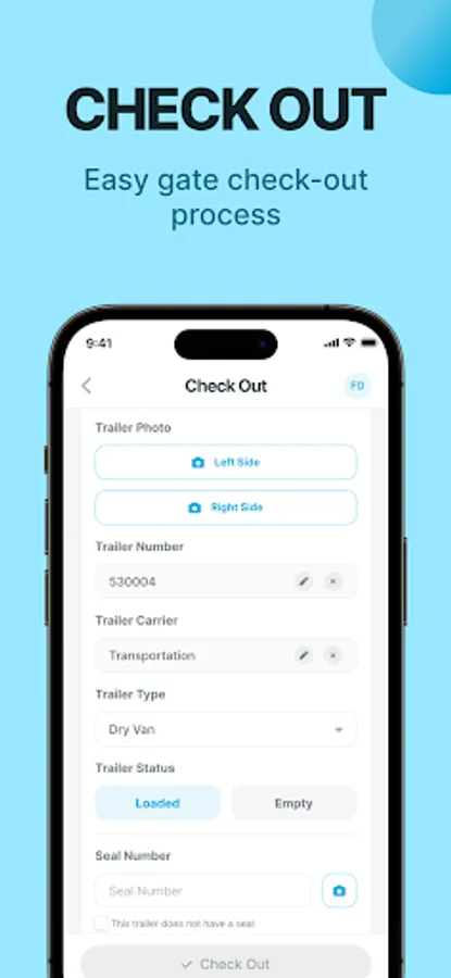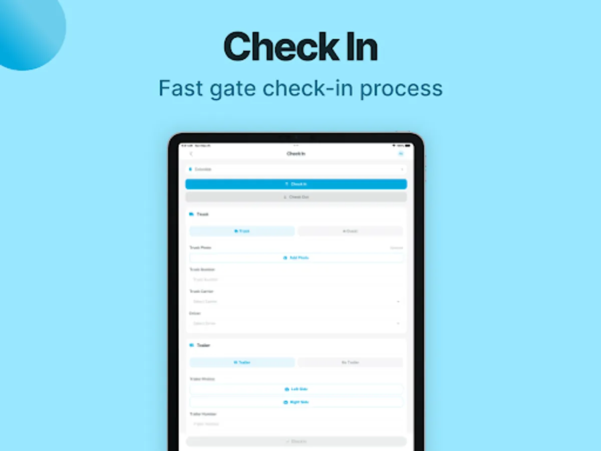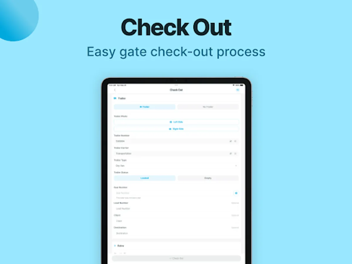 Fast gate check-ins with autofill saved trucks, trailers, and drivers.