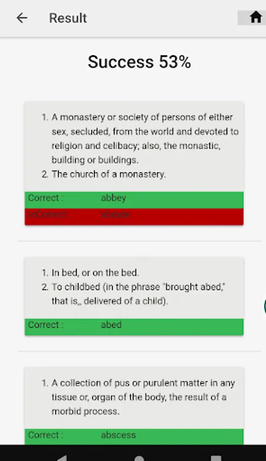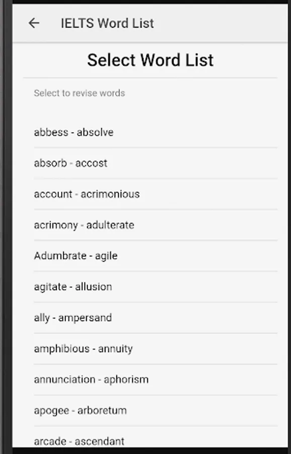 IELTS word vocabulary is a free application to build word vocabulary. There are different section which contains 30 words. After revising those words, you can switch to practice mode.
