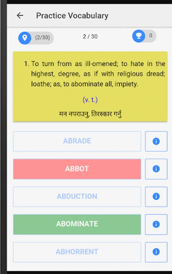 Features: There are more than 4000 IELTS word. Contains definition along with examples and word type. Includes Nepali meaning. Synonym and Antonym of the word.Pronunciation of word.Practice Mode.