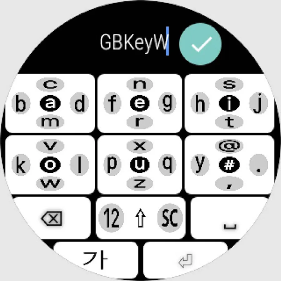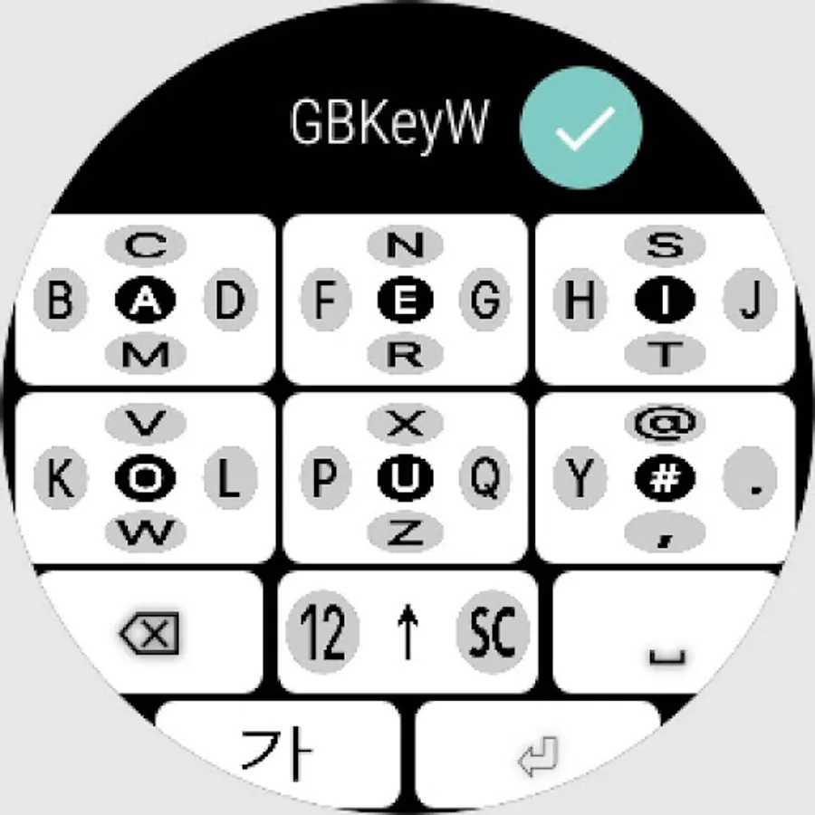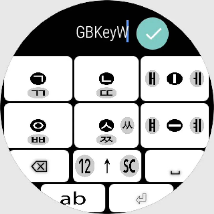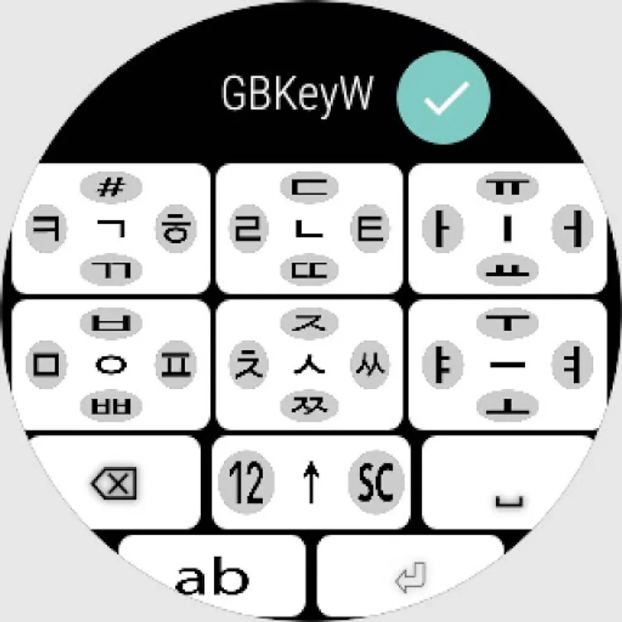 'GBKeyW Hangul' is a Korean keyboard for smart watch that inputs characters with simple and intuitive operation.