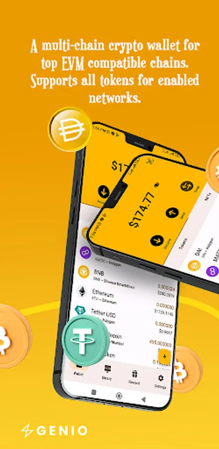 Genio Wallet - Your Secure Companion for the Modern Crypto World! You can store, send and receive Ethereum (ETH), Binance coin (BNB), Polygon (MATIC) and other cryptocurrencies including testnet tokens.