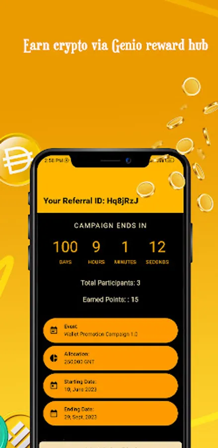 Genio Web 3.0 Wallet makes earning rewards as simple as spelling one's name. Our integrated reward hub offers exciting opportunities to earn additional tokens simply by utilizing the wallet. Engage in various activities, such as event campaigns, participating in decentralized finance (DeFi) protocols, or referring friends, and watch your rewards grow exponentially.