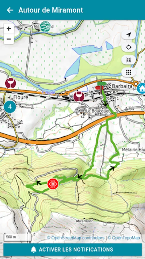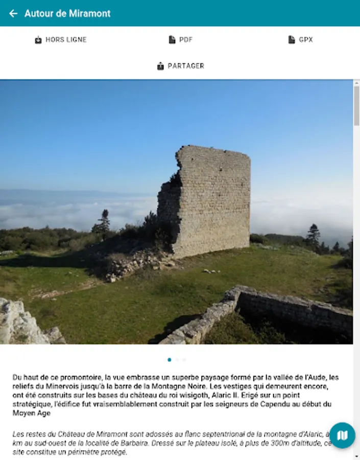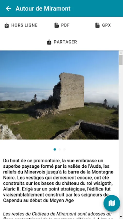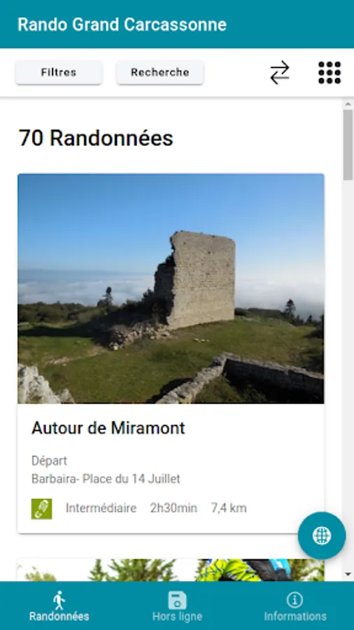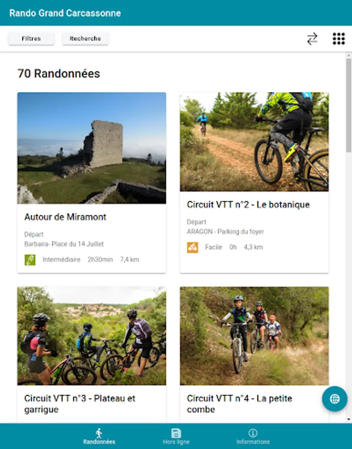 The mobile application "Rando Grand Carcassonne" accompanies you in the field. It allows you to consult all the practical information descriptions (duration, difficulty, elevation, step by step, map, altimetric profile, recommendations ...) photos and points of interest.