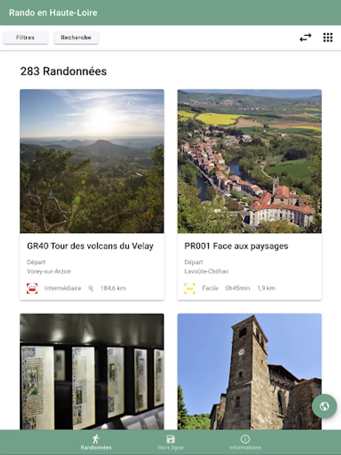 Want to take a walk in Haute-Loire? Discover the Rando en Haute-Loire app, with more than 300 hikes marked and guaranteed by the FFRandonnée Comité Haute-Loire.