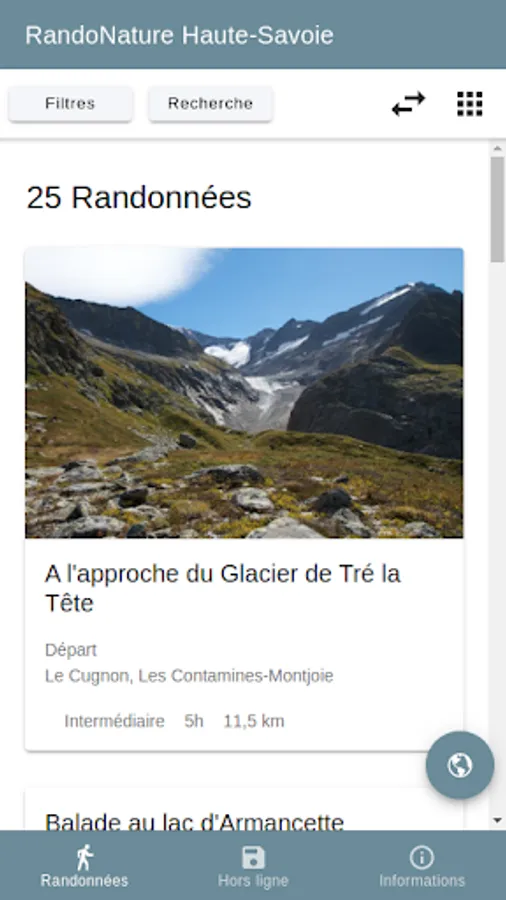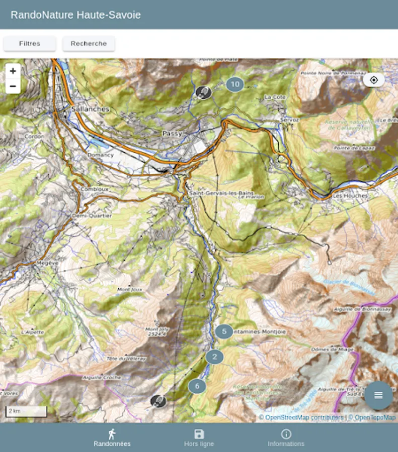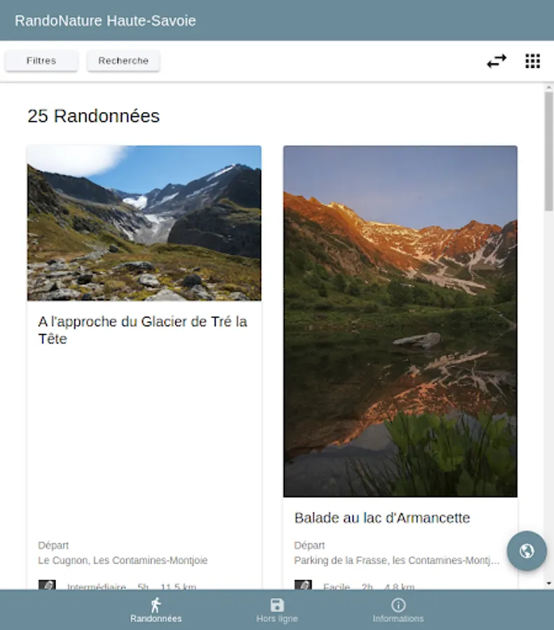 - Select your hikes, meticulously described on the interactive map or according to several criteria: theme, length, duration, height difference, theme, accessibility, etc.